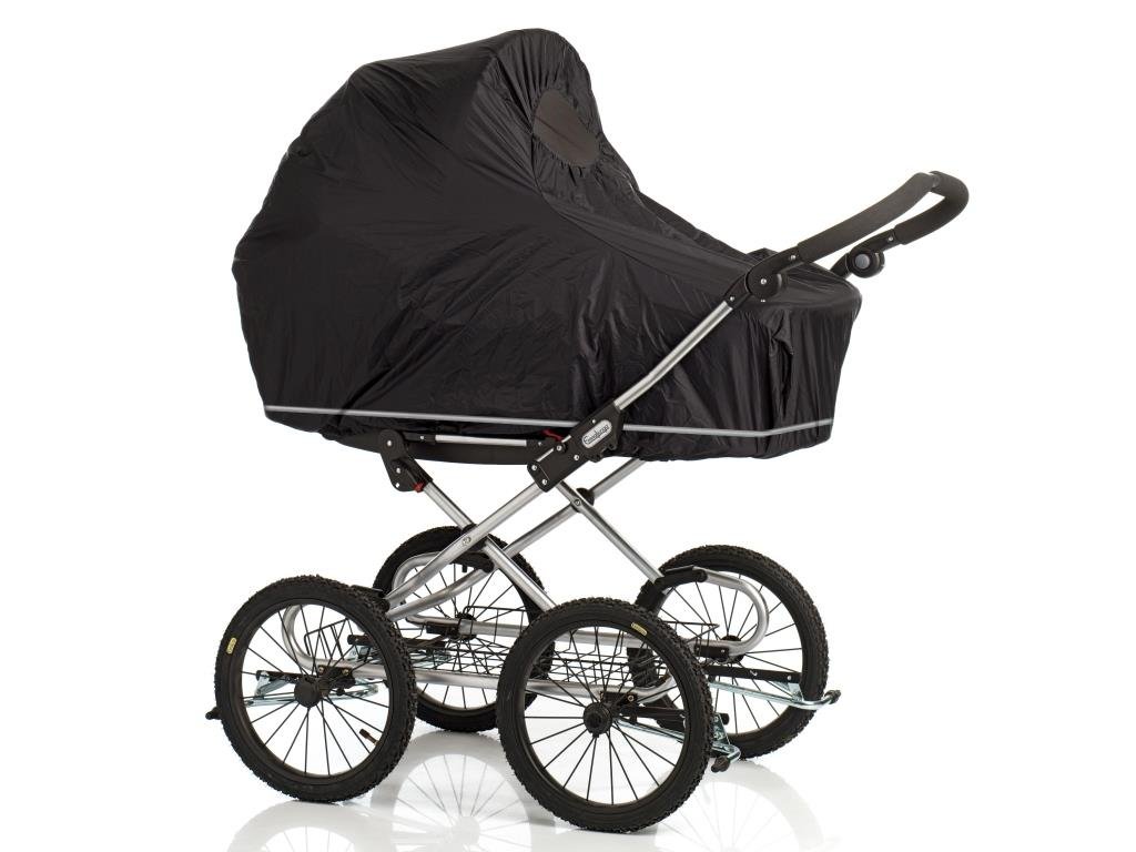 O veți aprecia într-o zi ploioasă. Husa de ploaie are o plasă de insecte încorporată, astfel încât să puteți proteja micuțul atât de picăturile de ploaie, cât și de insecte. Pelerina de ploaie are și aer condiționat, care permite umidității să iasă din cărucior, dar împiedică pătrunderea ploii înăuntru. Copilul dumneavoastră va avea cel mai bun și mai confortabil climat interior în cărucior. Pelerina de ploaie este ușor de pus și de scos datorită fermoarului de jur împrejur. Atunci când husa de ploaie nu este folosită, o puteți depozita într-o geantă de transport pe care o puteți atașa de mânerul căruciorului.