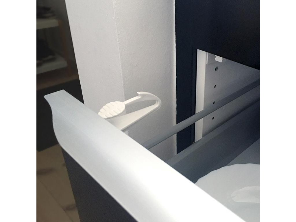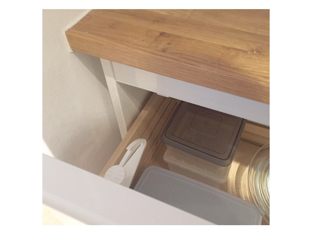 Protejează împotriva deschiderii sertarelor și ușilor dulapurilor. Împiedică ușile sau sertarele să se deschidă complet. Se deschide, deschizînd parțial ușa sau sertarul și apasați încuietoarea, apoi sertarul/ușa se poate deschide complet. Se fixeaza prin lipire. În cazul suprafetelor problematice se înșurubează din interior.
