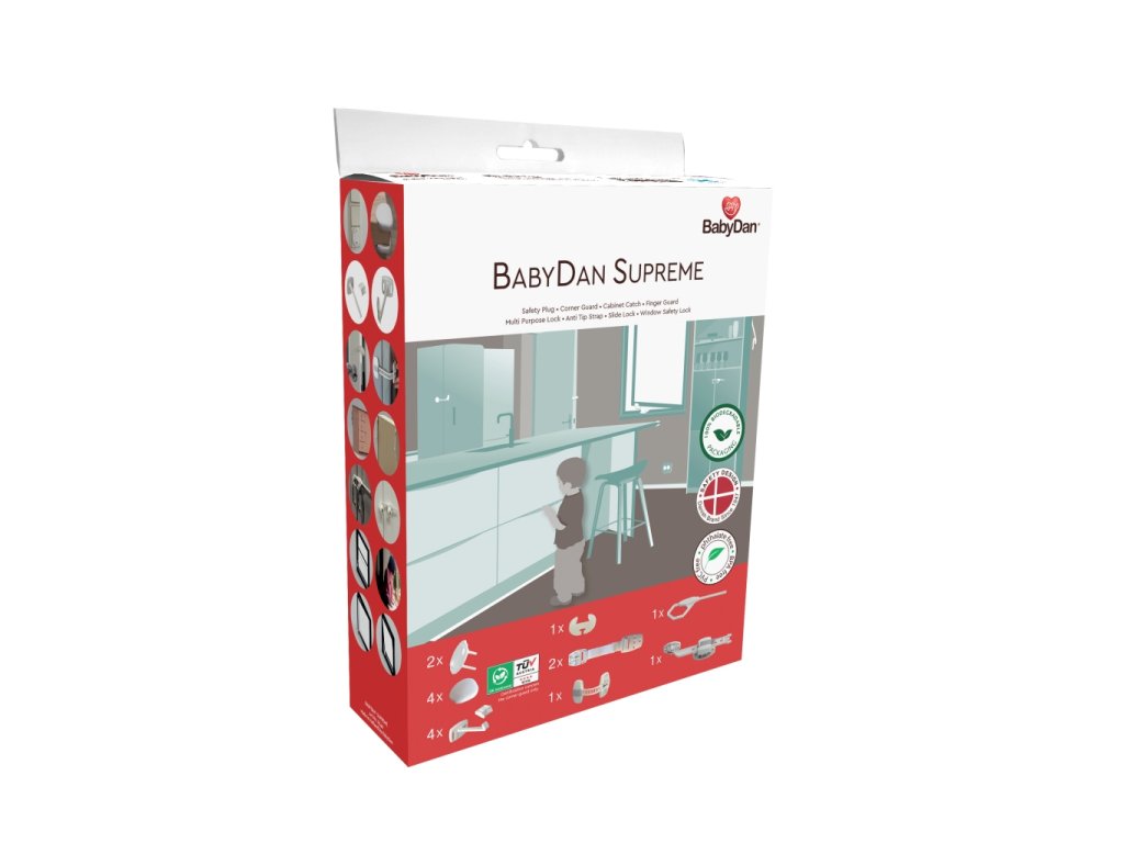 Kit cu unelte de siguranță BabyDan Starter Set. 16 produse de siguranță care vă vor ajuta să vă protejați copilul iubit. Setul starter cu 16 piese de unelte de siguranță reprezintă cea mai necesară bază de siguranță în casa dumneavoastră. Vă ajută la rezolvarea siguranței copilului în momentul în care acesta devine mai mobil și începe să se urce peste tot sau sa se plimbe singur prin casă. Chiar și cu toate eforturile tale, nu-i poți controla. Și astfel limitarea accesului său în locurile periculoase îl protejează de răni și accidente. Este mai bine să-ți petreci timpul îndepărtând locuri periculoase decât să stai în spital cu copilul dvs.