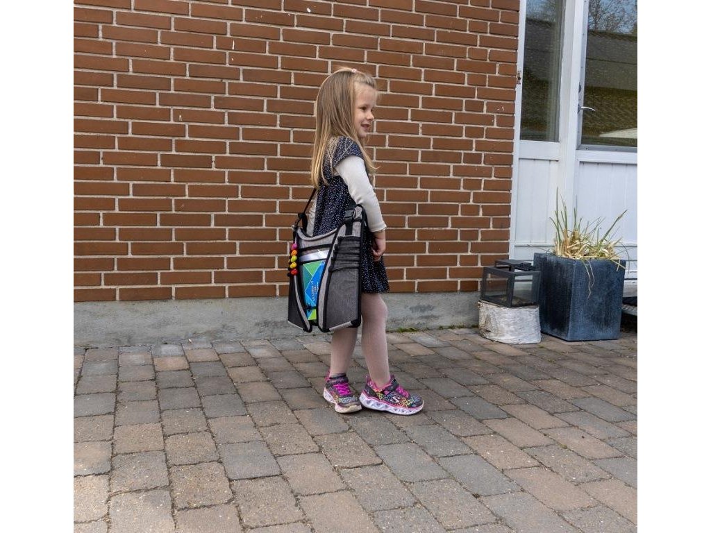 - Multiplele buzunare elastice păstrează markere, cărți, gustări etc. organizate.