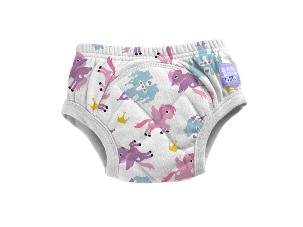 Stratul impermeabil, împreună cu stratul absorbant, protejează parțial împotriva murdăririi din jur. Ele ajută la accelerarea trecerii de la scutece la oliță, dar nu înlocuiesc scutecele. Le puteți oferi bebelușului dvs. ca un cadou. Chiloțeii îi dau copilului sentimentul că au crescut și că nu mai are nevoie de scutece. Nu le folosiți înainte ca bebelușul să fie pregătit să meargă la oliță. Deși chiloțeii de antrenament conțin un strat absorbant care reține cantități mici de urină, aceștia nu înlocuiesc în totalitate un scutec. Ele sunt concepute pentru copilul care este deja în procesul de tranziție la oliță și care se scapă ocazional alergând la oliță. În chiloțeii de antrenament, umezeala este simțită imediat atunci când fac pipi în ei, respectiv îi încurajează să fugă repede le oliță. Chiloțeii nu trebuie purtați în timpul nopții și nici la culcare, iar dacă nu aveți altă opțiune, puneți în ei un alt scutec multistrat Bambino Mio pentru a suplimenta absorbția. Spălați scutecele de învățare de cel puțin două ori înainte de a le folosi pentru prima dată.