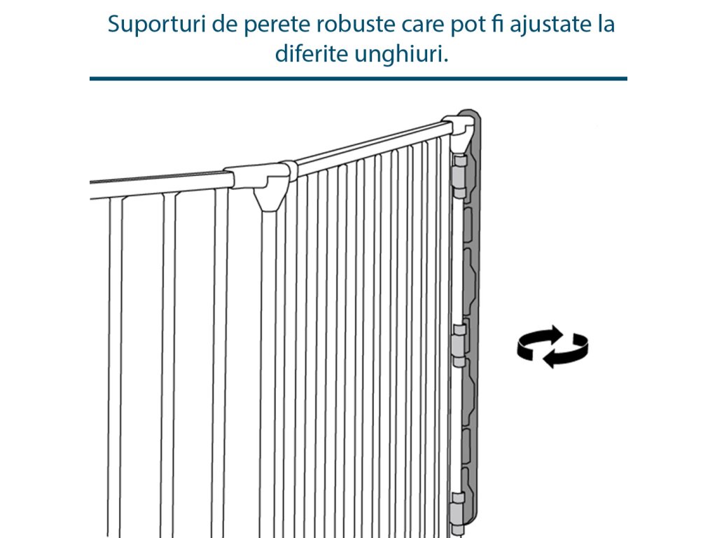 CombiFit XXL este concepută având în vedere flexibilitatea. Poarta poate fi ajustată în diferite unghiuri pentru a se adapta formei camerei - indiferent dacă doriți o formă de semilună sau o structură ușor curbată. Aveți libertatea de a poziționa piesele individuale pentru a se potrivi cel mai bine spațiului dumneavoastră. Puteți trece cu ușurință prin poartă folosind ușa lată care poate fi deschisă din ambele părți cu o singură mână - o caracteristică utilă într-o viață aglomerată. Datorită designului său flexibil și construcției robuste, BabyDan CombiFit XXL este o soluție fiabilă pentru crearea unui mediu sigur în spații mai mari. Poate fi extinsă pe termen nelimitat cu orice număr de extensii (extensiile de 33 sau 72 cm se vând separat)