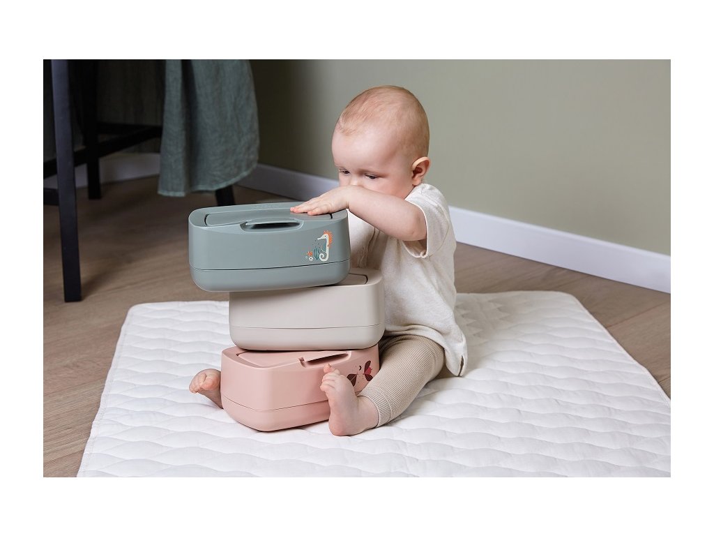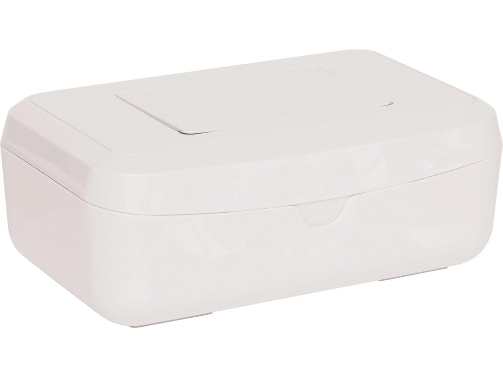 Cutie universală pentru șervețele umede cu protecție împotriva uscării. Un plus frumos la masa de înfășat. Se închide cu ușurință pentru a preveni uscarea șervețelelor. Cutia poate fi deschisă cu o singură mână. Deschiderea specială vă asigură, de asemenea, că puteți scoate fără efort următorul șervețel și îl puteți folosi imediat.