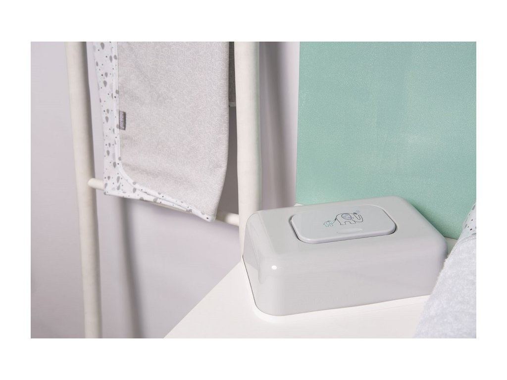 Cutie universală pentru șervețele umede cu protecție împotriva uscării. Un plus frumos la masa de înfășat. Se închide cu ușurință pentru a preveni uscarea șervețelelor. Cutia poate fi deschisă cu o singură mână. Deschiderea specială vă asigură, de asemenea, că puteți scoate fără efort următorul șervețel și îl puteți folosi imediat.
