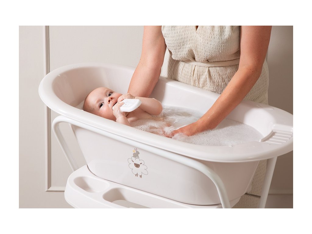 Să faceți baie bebelușului este un ritual zilnic de care dvs. și copilul dvs. vă veți bucura. Cădița de baie confortabilă și atent construită Bébé-jou este echipată cu sistemul inovator Click. Doar 2 clicuri și cada se așează ușor și în siguranță pe suportul de baie. Cădița se poate detașa de pe suport la fel de ușor cu un clic.