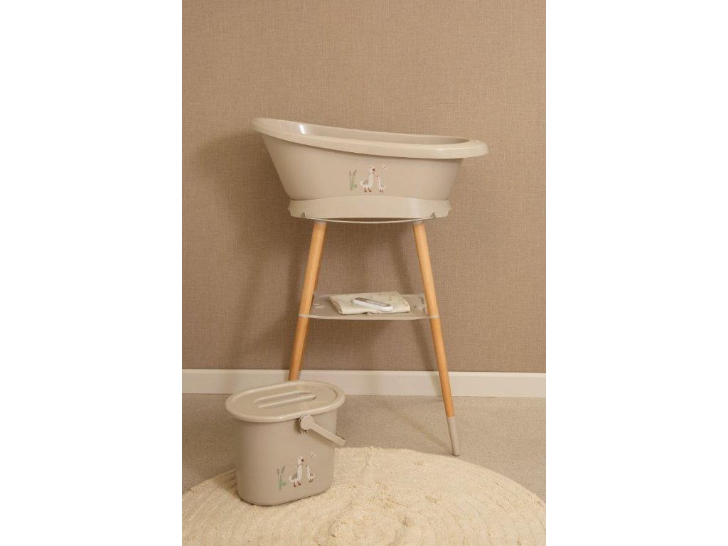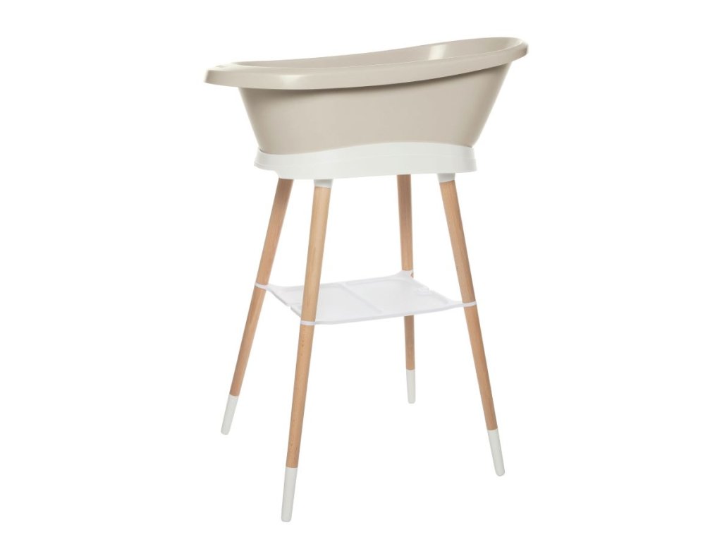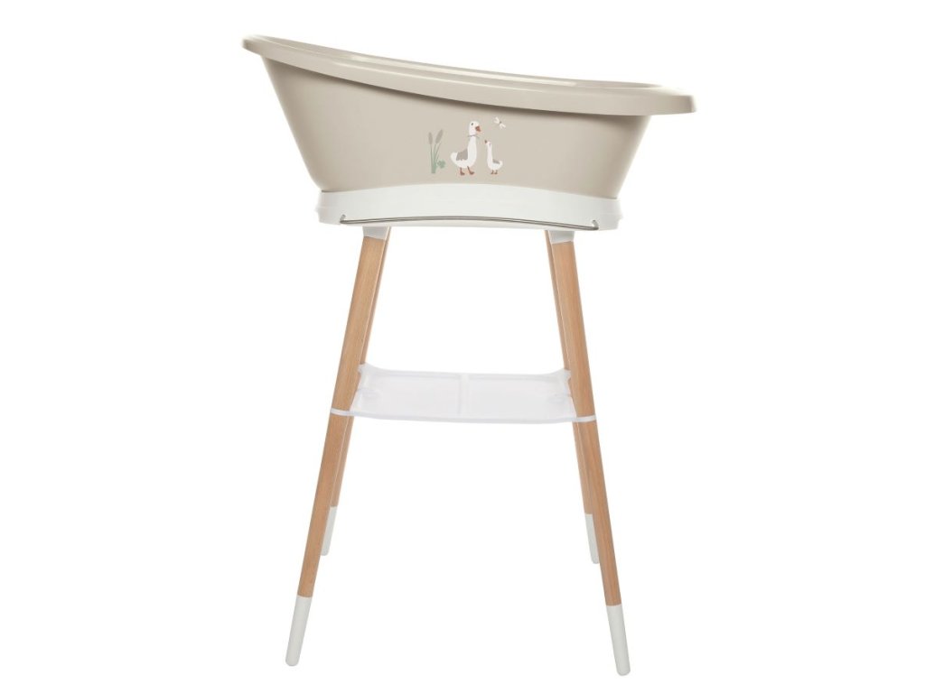 Cădița pentru bebeluși Bébé-jou Sense cu noul sistem de drenaj și prindere Click aparține seriei de design Sense. În această serie veți găsi și un suport de cadă de lux cu picioare subțiri din fag lăcuit.