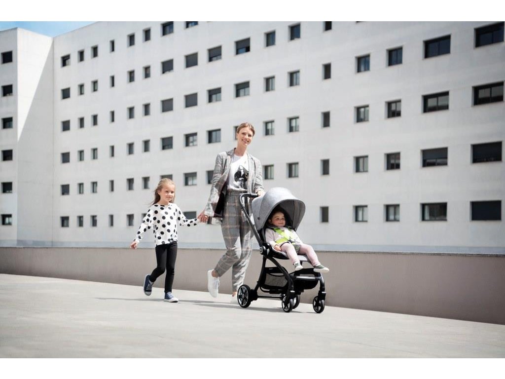 Înălțimea copertinei poate fi reglată în mai multe poziții cu o singură mișcare, astfel încât se adaptează întotdeauna la dimensiunea copilului. Cadrul și roțile sunt, de asemenea, concepute pentru a face căruciorul extrem de mobil și incredibil de ușor de manevrat.