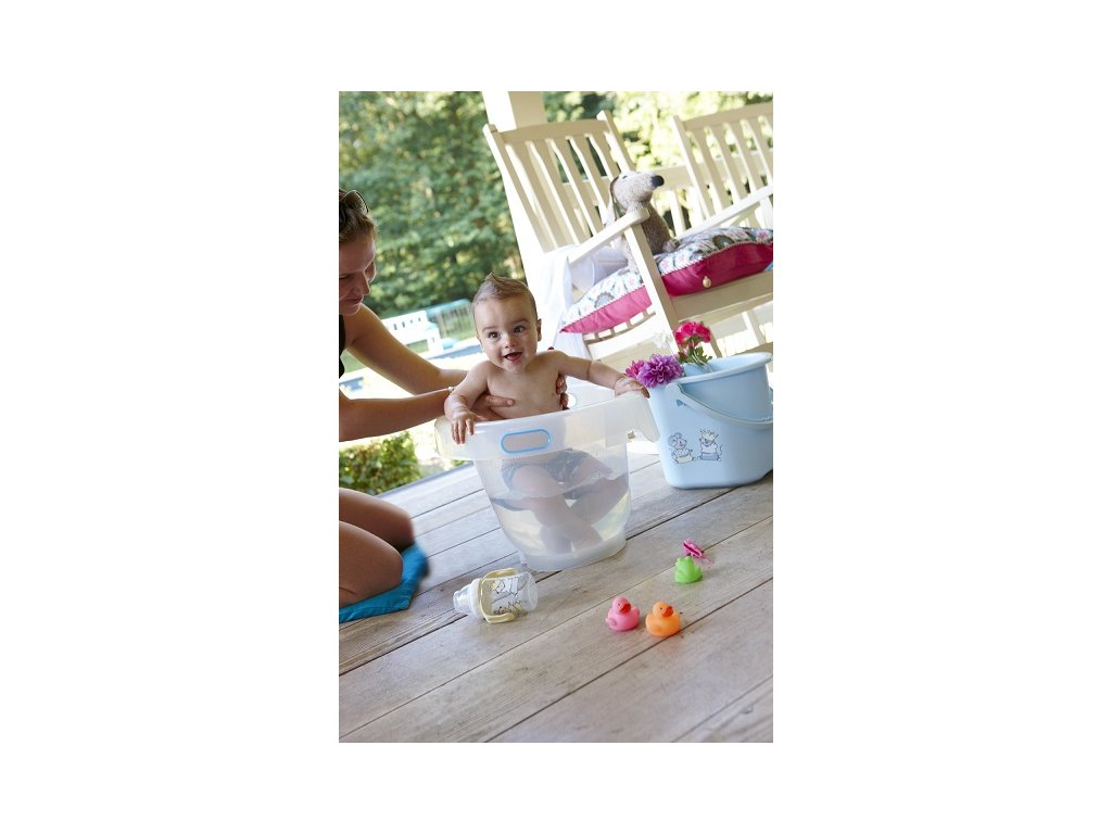 Bébé Bubble este confortabil nu numai pentru copil, ci și pentru părinte. Are un guler larg pe care vă puteți odihni confortabil cotul în timpul jocului în apă. Chiar și băile mai lungi pentru bebelușul dvs. vor fi plăcute. Împreună cu găleata de baie puteți achiziționa un suport universal din metal furnizat la două înălțimi și astfel puteți face baie copilului și în picioare. Baia în găleata de baie nu numai că vă va curăța bebelușul, dar va ajuta și presiunea apei să îi relaxeze peristaltismul. Acest lucru va fi apreciat atunci când îl doare burtica umflată și nu poate dormi. Bébé-Bubble este ușor înălțată la spate și, prin urmare, oferă sprijin pentru funduleț și ceafă. Bebelușul dumneavoastră se va relaxa în poziția cu care era deja obișnuit cu mama lui în burtică, din momentul nașterii și până la 6 luni. Caracteristica interioară informează cu privire la nivelul de apă recomandat.