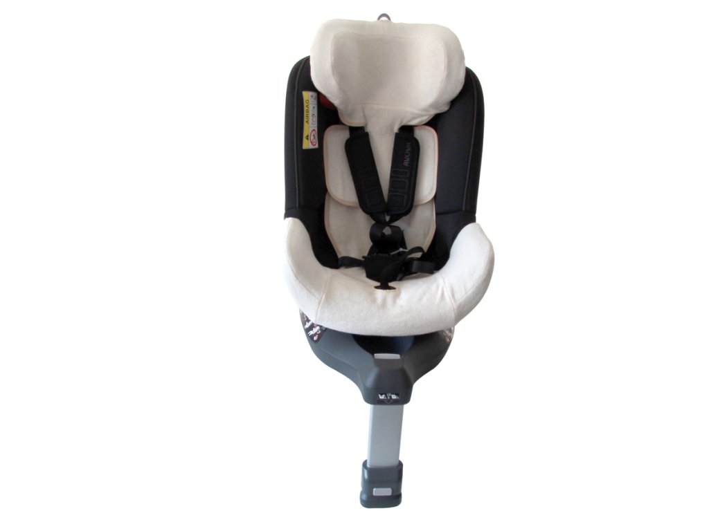 Husa de vară din bumbac frotir organic pentru scaunul auto Avova Swan-Fix i-Size absoarbe bine transpirația și este delicată pentru pielea fină a bebelușului. Se usucă foarte repede și poate fi spălată cu ușurință la 30°C. Materialul folosit este 100% bumbac organic.