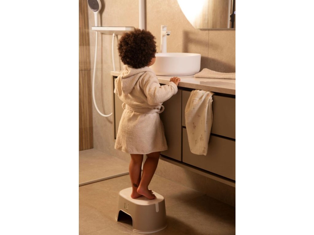 La început, pentru copii, totul este foarte înalt. Prin urmare, o treaptă este esențială atunci când cel mic are nevoie la toaletă sau cănd își spală mâinile. Atunci este un bun început pentru a-l învăța obiceiurile de igienă. Înălțătorul are o înălțime potrivită și prin urmare, poate fi folosit cu ușurință de copilul dumneavoastră. Înălțătorul este sigur datorită materialului antiderapant de pe partea de jos și de sus. Baza este compactă și ușor de depozitat.