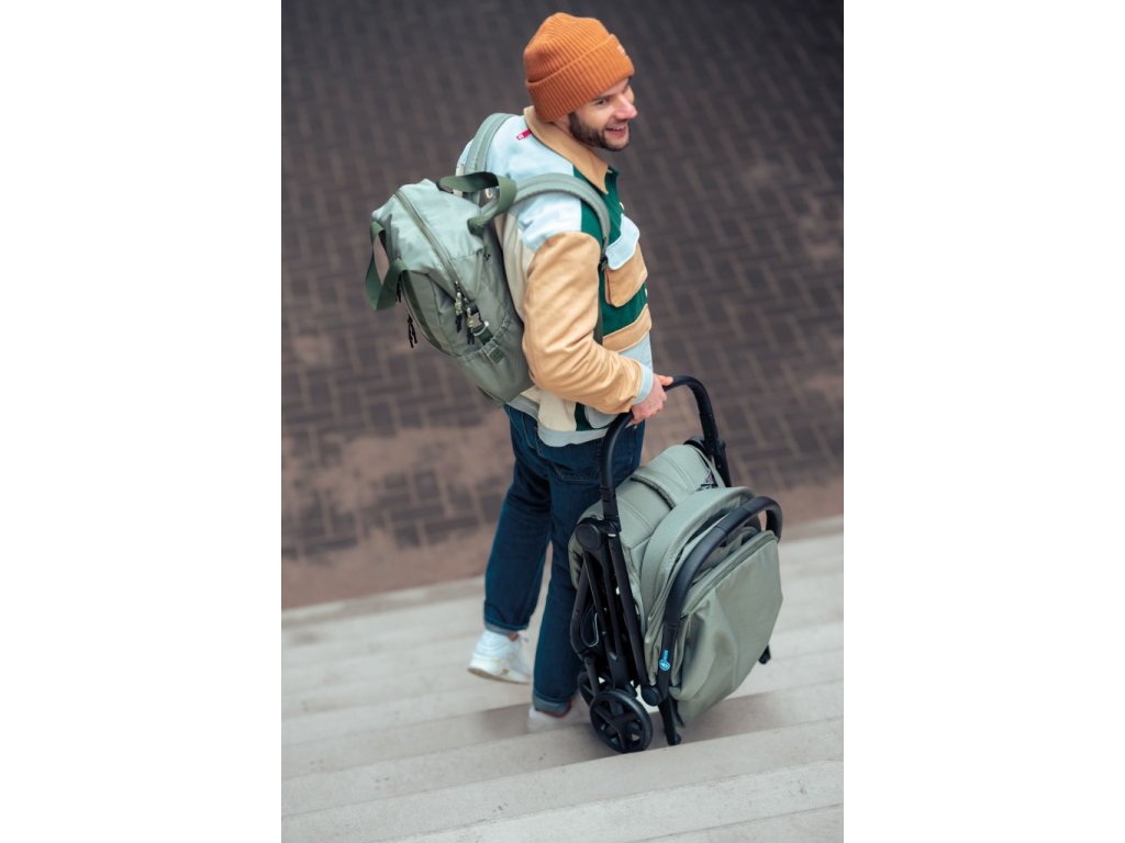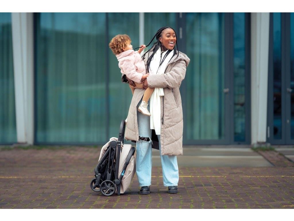 Ușor de folosit: Cântărește 8,1 kg și se pliază singur. Atunci când este pliată, este foarte compactă și stă singură cu mânerul în sus. Este ușor de prins și veți avea întotdeauna o mână liberă pentru copil. Este atât de compactă încât o puteți depozita cu ușurință în mașină sau în casă.