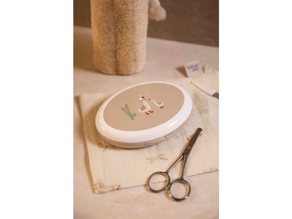Un set ideal pentru îngrijirea unghiilor copiilor. Include foarfece cu capete rotunjite, o pilă de unghii și clește de unghii.