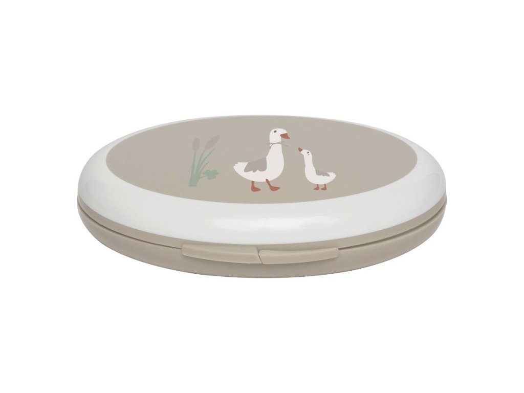 Sculele sunt fabricate din oțel inoxidabil. Cutia protejează împotriva prafului și ajută la menținerea curată a manichiurii. Dar chiar și așa, curățați instrumentele individuale cu atenție înainte de fiecare utilizare și, în cazul nou-născuților, dezinfectați-le cu o soluție de alcool.