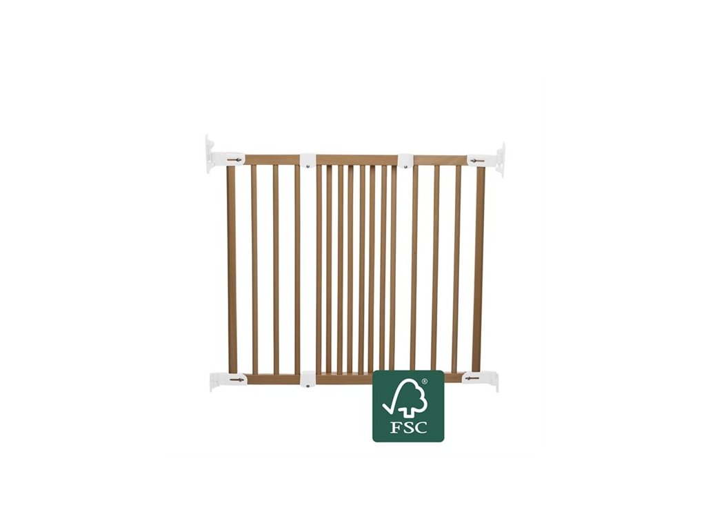 Flexi Fit este un sistem unic și foarte flexibil, care se potrivește aproape oricărei deschideri, deoarece suporturile de perete pot fi înclinate astfel încăt să poată sta atăt în interiorul, cât și în exteriorul cadrului ușii. Dacă este montată în cadrul ușii poate fi deschisă în ambele sensuri, cu o singură mână. Pentru extindere nu este nevoie de achiziționarea altor piese. La montarea în cadrul uși poarta se potrivește deschiderii de la 67 la 105,5 cm. Daca este montată în afara cadrului ușii, deschiderea maximă va fi doar cu 5 cm mai mică. În conformitate cu cea mai nouă normă EN1930:2011.ade in Denmark. Produsul este certificat FSC® – lemnul provine din silvicultură durabilă.