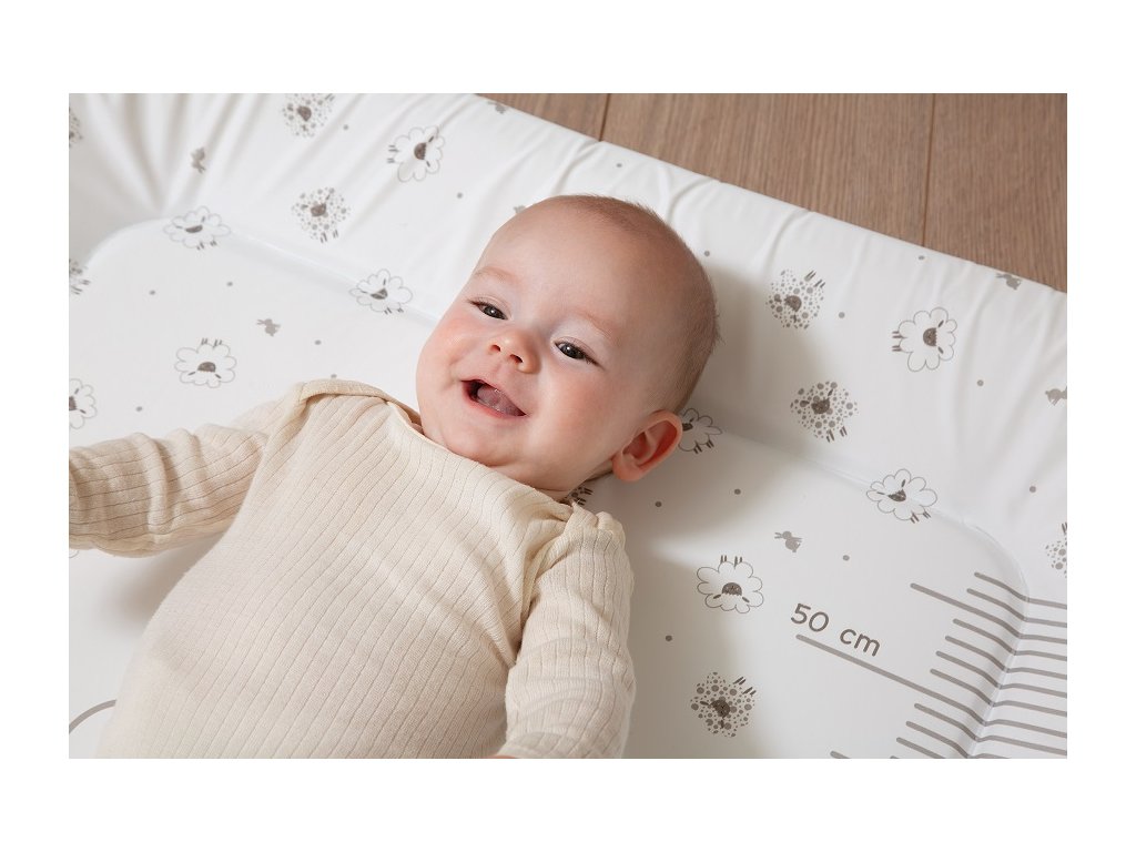 Saltea de înfășat confortabilă, spațioasă, imprimată integral, cu margine ridicată pe trei fețe. Salteaua de înfășat Bébé-jou are o dimensiune confortabilă. Este fabricată din spumă polieterică de înaltă calitate, cu o rezistență de lungă durată. Aceste proprietăți speciale garantează că capul și gâtul bebelușului sunt deosebit de bine susținute. Marginea ridicată pe trei laturi asigură că copilul va fi confortabil și in siguranță in mijloc. Filmul și spuma respirabilă sunt fabricate din materiale ecologice și nu conțin substanțe nocive. Iar dacă preveniți acțiunea uleiurilor și grăsimilor pe suprafața sa, acesta va servi atâta timp cât este nevoie fără prea multă uzură. Certificat Oeko Tex.