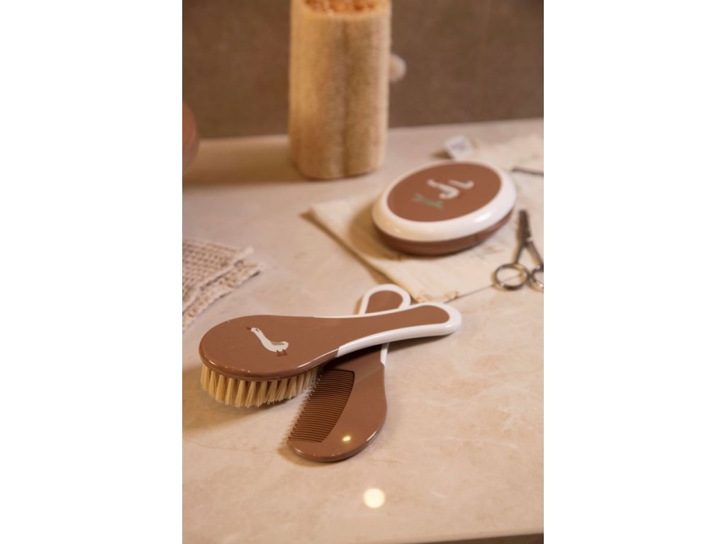 Cu ajutorul periuței pentru păr Bebe-jou, nu doar piaptănă părul dar și masează fin căpșorul. Asta datorită faptului că spre deosebire de perile fabricate din nailonul dur peria de la Bebe-jou are un fir natural moale care nu irită pielea delicată a căpșorului.