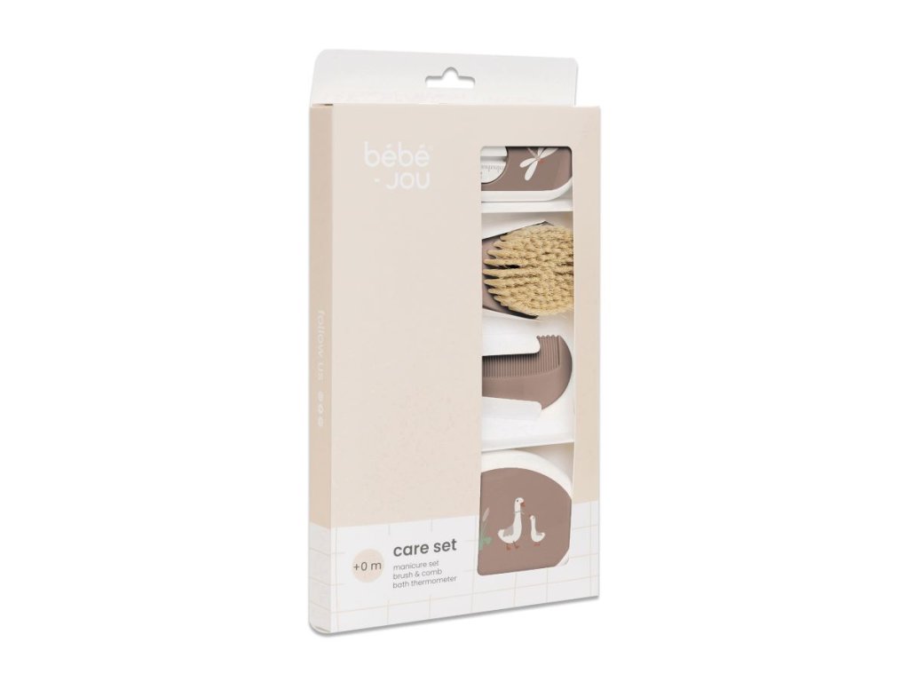 Setul cadou drăguț cu 4 componente va bucura proaspeții părinți. Setul nu este doar un cadou frumos, dar și unul foarte practic cu un ambalaj minunat. Conține: termometru de baie, set de manichiură, pieptene și perie.