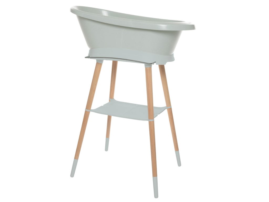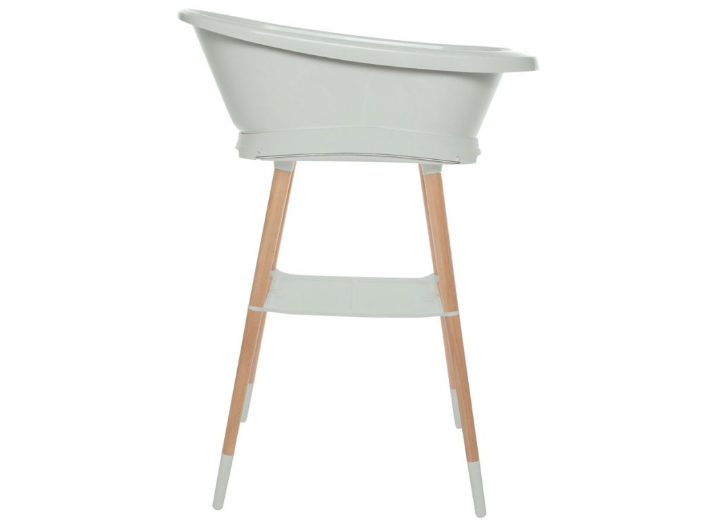 Suportul de baie Sense, foarte stabil, are picioare din lemn de fag lăcuit certificat FSC. Acest lucru îi oferă suportului un aspect modern și cald. Este dotat cu dispozitive practice; un suport pentru prosoape este atașat în partea din față. Raftul spațios din plastic oferă suficient spațiu pentru, de exemplu, șampon, lavetă, jucării de apă sau gel de baie. Acest lucru înseamnă că aveți la îndemână toate lucrurile necesare pentru a vă bucura în liniște de baie împreună cu cel mic. Un sistem de fixare inovator asigură că baia poate fi atașată cu ușurință la suport și la fel de ușor de îndepărtat. Cu un simplu clic, puteți face baie bebelușului dvs. fără a fi deranjat și în siguranță.