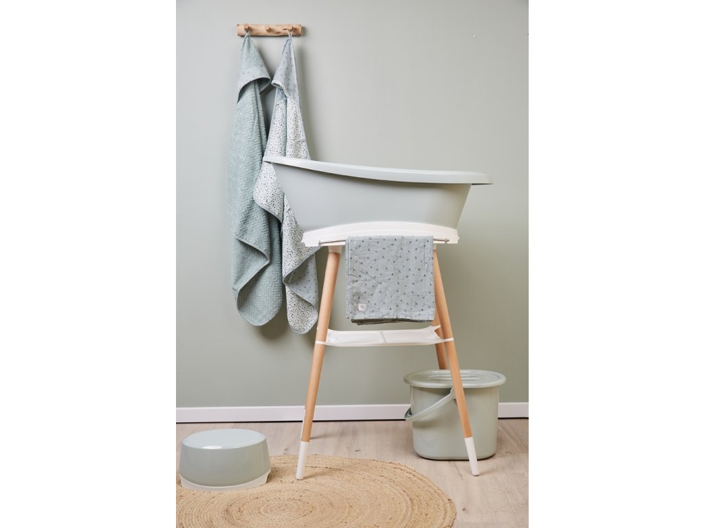 A face baie bebelușului este un obicei zilnic care vă va face plăcere atât dumneavoastră, cât și copilului vostru. Cu o baie pe suport, acest lucru poate avea loc chiar în camera bebelușului, iar cel mic nu trebuie să fie cărat nicăieri. Baia cu suport rămâne apoi în cameră pentru mai mult timp, iar prezența ei contribuie la atmosfera camerei. Suportul de baie cu design Bébé-Jou Sense sporește această impresie prin combinația plăcută de plastic și picioare subțiri din fag.