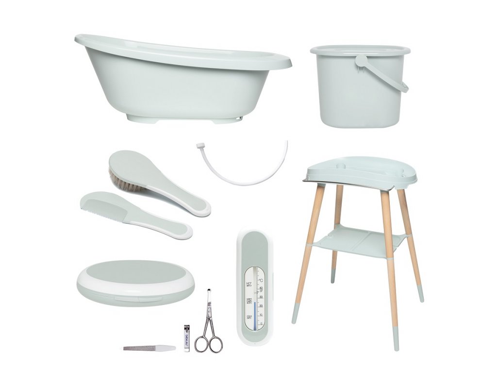 Setul include: cadă de baie Sense, suport de lux din lemn de fag lăcuit, găleată pentru scutece, set de manichiură, pieptene și perie, termometru de baie și furtun de scurgere. Pe scurt, kitul dvs. complet pentru baie!