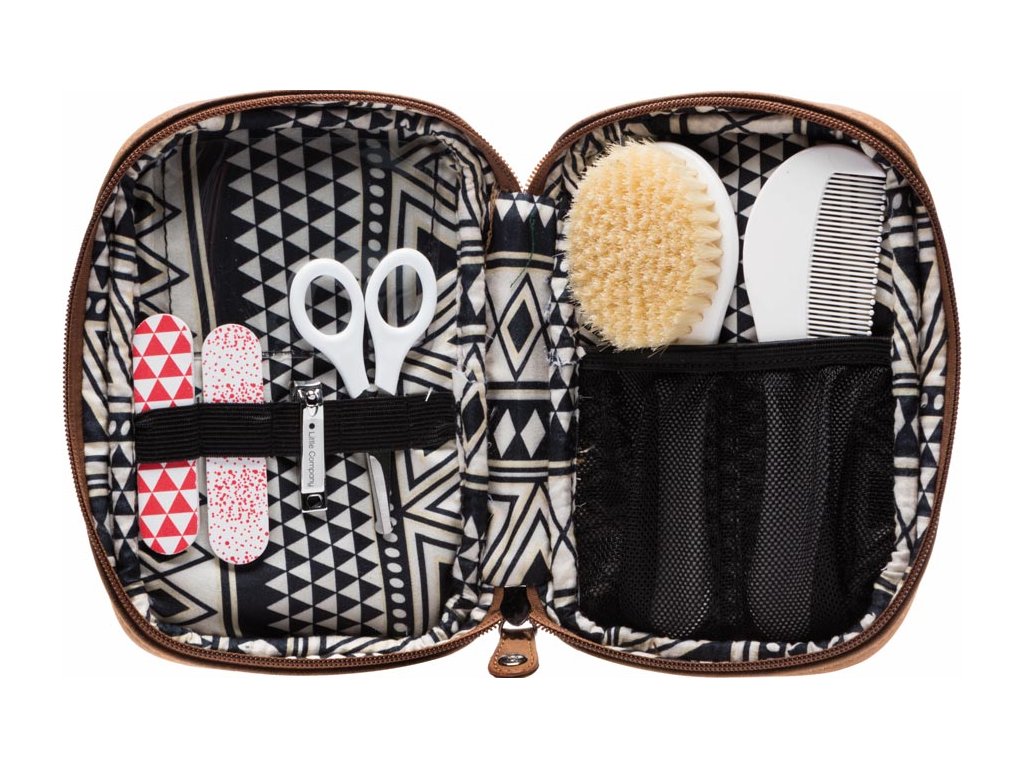 Manichiură într-o carcasă modernă. Combinația cu geanta de schimb Little Company Copenhagen Perfo este frumoasă! Setul de manichiură este foarte potrivit pentru călătorii sau pentru uz zilnic. Anterior, unghiile nou-născuților nu erau tăiate. Pentru a evita zgârierea obrajilor, au fost utilizate mănuși pentru copii. Aceste vremuri fac parte din trecut. Îngrijirea unghiilor nu mai este o problemă cu setul de manichiura, dar trebuie totuși să fiti foarte atenta. Pila mică de unghii ajută la finisare. Manichiura este destinată copiilor de la naștere până la vârsta de 5 ani. Setul conține tăietor de unghii, foarfece de unghii cu capete rotunjite, două pile de unghii și diverse spații de depozitare.