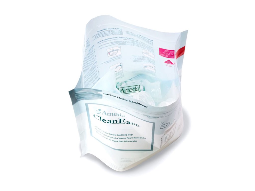 Protejați-vă bebelușul de infecții și sterilizați obiectele pe care le pune în gură sau intră în contact cu mâncarea sa. Este ușor cu un set de 7 pungi mari de sterilizare cu abur pentru microunde. Potrivite pentru suzete, biberoane și unele piese ale pompei de sân. Fiecare pungă durează până la 20 de utilizări. Punga cu abur CleanEase dezinfectează piesele pompei de sân, cum ar fi protectoarele pentru sân, membranele și valvele, în mai puțin de 5 minute. CleanEase poate fi folosită și pentru a dezinfecta protectoarele pentru mameloane, biberoanele colectoare și capacele. Punga se mândrește cu un material RCPP excelent rezistent la temperaturi ridicate, conceput pentru a rezista la încălzirea și presiunea microundelor mai bine decât polipropilena utilizată de mărcile de top.