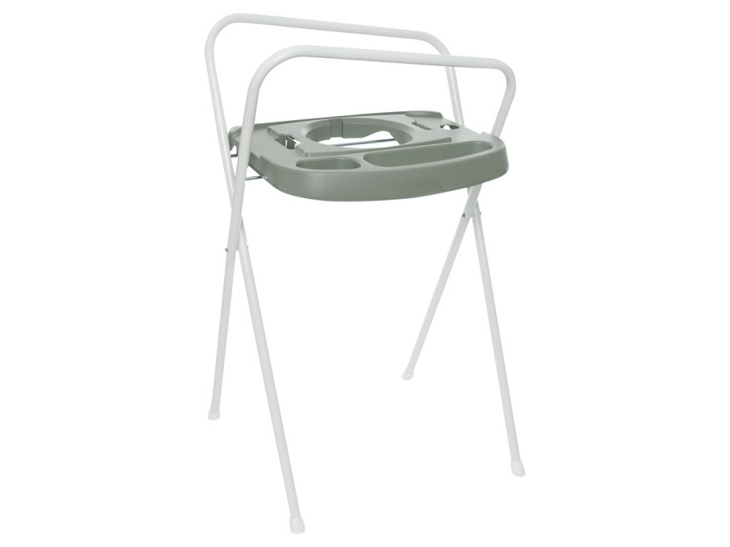 Suportul are o inălțime de 98 cm, o gaură pentru agățat prosopul și un loc pentru săpun. Este pliabil și echipat cu sistemul inovator Click. Doar 2 clicuri și cada se așează ușor și în siguranță pe suportul de baie. Cada se poate detașa de pe suport la fel de ușor cu un clic. De asemenea, găleata de baie Bébé-Bubble poate fi amplasată pe acest suport, așa că trebuie să cumpărați doar 1 suport și să așezați mai întâi Bébé-Bubble și apoi cada pe el.