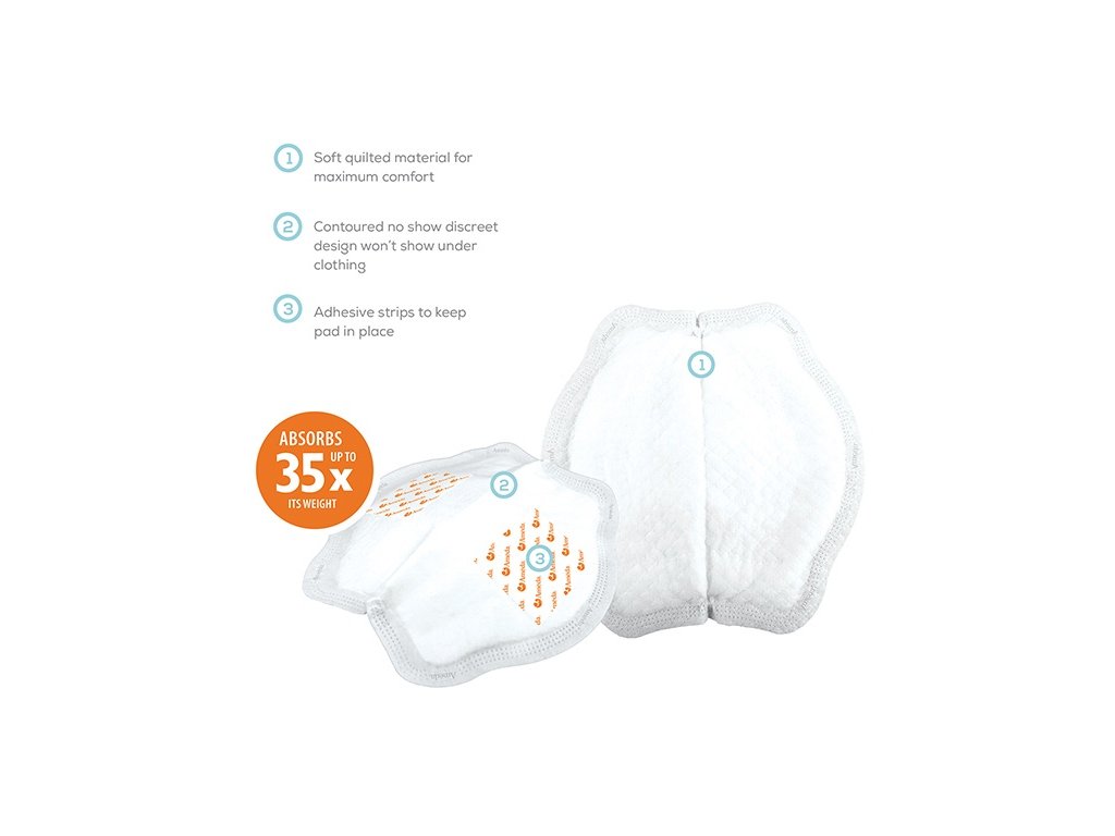 Absorbind până la 35 de ori greutatea lor, absorbantele pentru sâni MoistureGuard ultra-subțiri și confortabile se potrivesc perfect și discret în interiorul sutienului pentru a preveni scurgerile incomode. Aceste absorbante de unică folosință sunt modelate pentru a se potrivi mai bine și a menține hainele uscate, zi sau noapte.